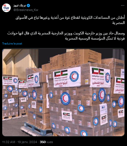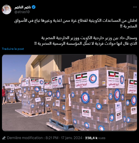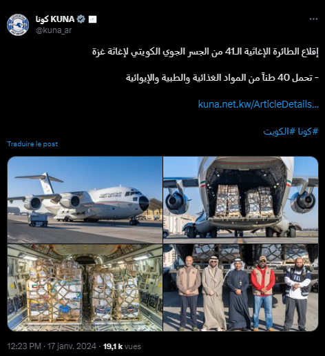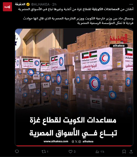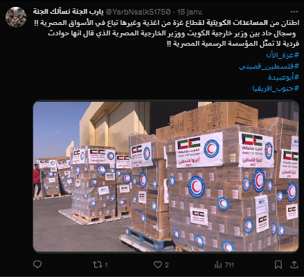 في هذا السياق، سنسلط اليوم الضوء على منشورات تتعلق بمساعدات إنسانية خصصتها دولة الكويت لقطاع غزة والتي حققت آلاف المشاهدات على منصة إكس وتمت مشاركتها بشكل واسع.