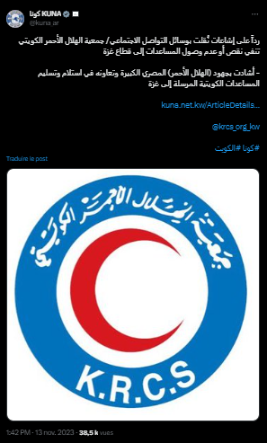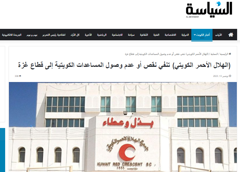 بالإضافة إلى ذلك، تم تداول هذا الادعاء مرفقًا بالصورة نفسها على وسائل التواصل الاجتماعي في شهر نوفمبر 2023، إلا أن جمعية الهلال الأحمر الكويتي نفت بشدة وجود أي نقص أو عدم وصول المساعدات إلى قطاع غزة. وفي إشادة إيجابية، أثنت الجمعية على “الجهود الكبيرة والتعاون الفعّال مع الهلال الأحمر المصري في استلام وتسليم المساعدات الكويتية الموجهة إلى غزة”.