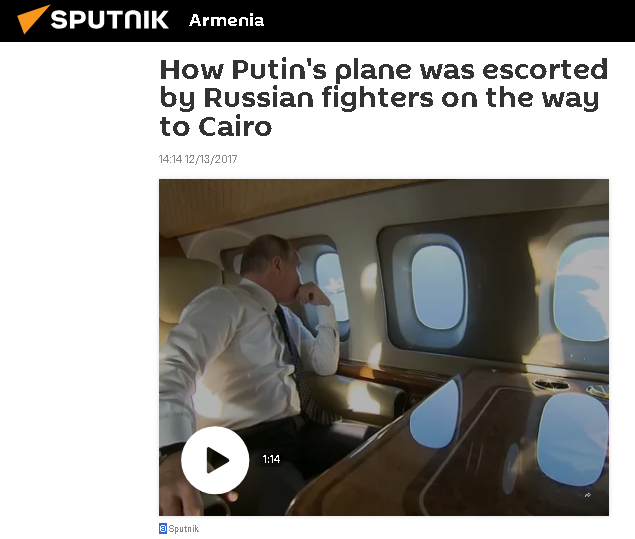 - الفيديو لبوتين وهو يشاهد الطائرات الحربية التابعة لسلاح الجو الروسي المرافقة له أثناء الرحلة.