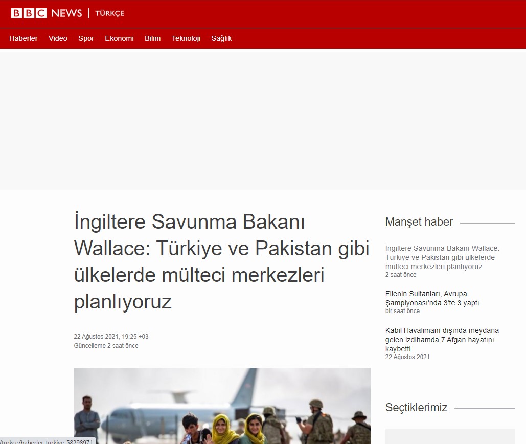 İddiayı veren haber mecralarının bazılarında kaynak olarak BBC Türkçe gösterildi. BBC Türkçe’deki ilgili haberin ilk halinde (1.Görsel) “İngiltere Savunma Bakanı Ben Wallace İngiltere’nin Pakistan ve Türkiye gibi ülkelerde Afgan mülteciler için merkezler kurma planı yaptığını belirtti” ifadesi yer aldı. İfadenin Wallace’in The Mail On Sunday’deki makalesinde yer aldığı söylendi ve Wallace’in planın detaylarından bahsetmediği belirtildi.