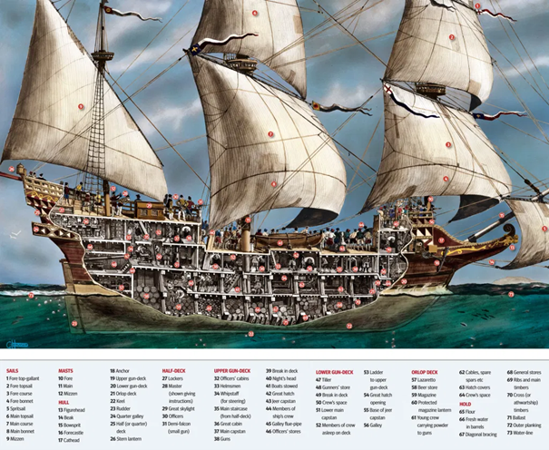 Açık bir şekilde dönemin çizimlerinde de kadırgaların alçak, yan kısımlarda çok sayıda küreğe sahip ve küçük yelkenli gemiler olduğu görülüyor. Öbür taraftan kalyonlar ise çok daha büyük, geniş, kare yelkenlere sahip ve ağır gemiler olarak göze çarpıyorlar. Uzun bir süre boyunca Akdeniz’de kadırgaların daha aktif olarak kullanılmasının sebeplerinin başında ise Akdeniz’in rüzgar açısından denizcileri sık sık yüz üstü bırakması ve haliyle kadırgaların bir karşılaşma durumunda kalyonlara göre hız ve manevra açısından üstün konumda olması geliyor.
