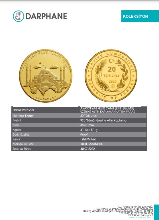 - Görüntüdeki madeni para, 2020’de cami olarak ibadete açılan Ayasofya’nın hatıra parası olarak basılmış.