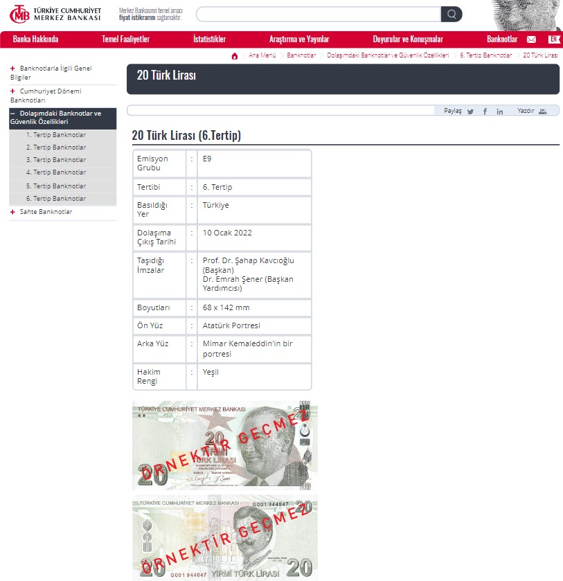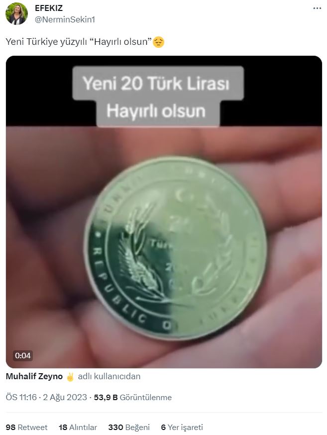 - Darphane ve Merkez Bankası’nın internet sitesinde, 20 liralık madeni para olduğuna dair bilgi bulunmuyor.