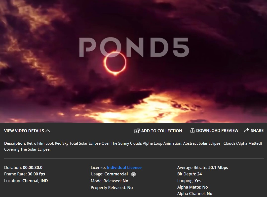 Fotoğrafın nerede kaydedildiği anlaşılıyor. Arka plana eklenmiş kızıla çalan havanın rengi ve tam güneş tutulması efektini “Red sky”, “Total Sun Eclipse” gibi anahtar kelimelerle arattığımızda, bir stok görsel sitesi olan Pond5’da bulunduğu sonucuna ulaşıyoruz.