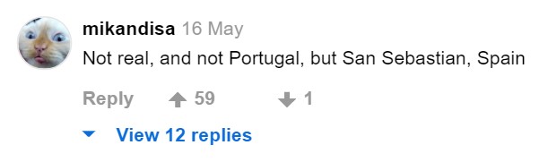 Fotoğrafı tersine görsel arama yöntemi ile Google Images üzerinde tarattığımızda, daha önce de paylaşımda olduğuna ulaşıyoruz. Bir görsel paylaşım sitesi olan 9GAG’te aynı postun paylaşıldığı görülüyor. Bir kullanıcı bu paylaşımın altında fotoğrafın gerçek olmadığını ve Portekiz’de kaydedilmediğini söyleyip, İspanya’nın San Sebastián kentinde çekildiğini belirtmiş.