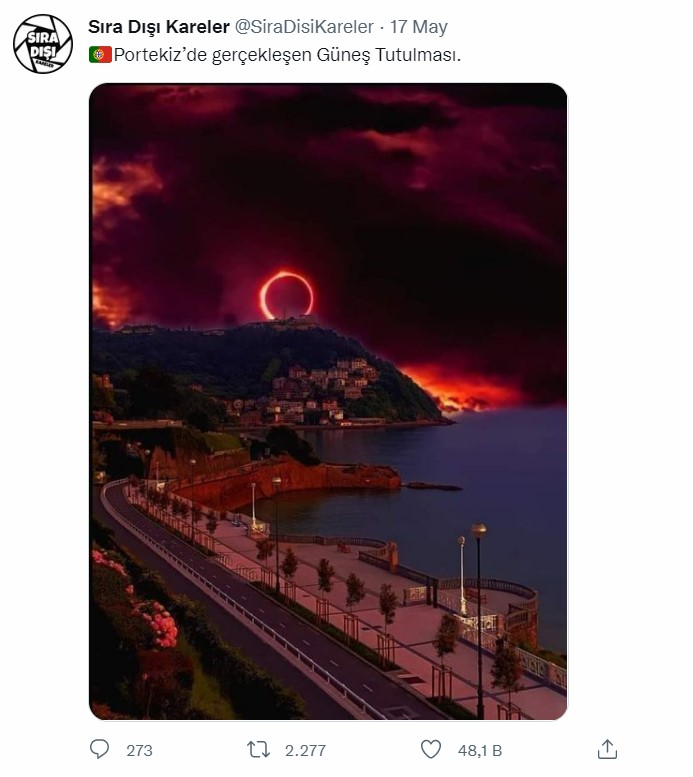 Fotoğrafın Portekiz’deki tam Güneş tutulmasını gösterdiği iddiası