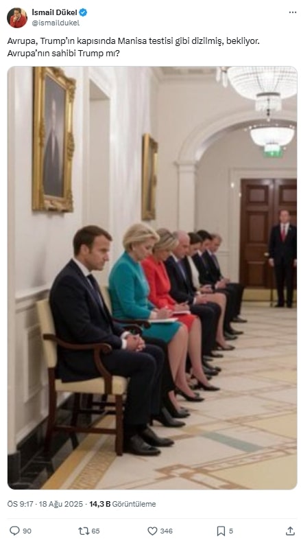 Görüşme tüm dünyada gündeme otururken sosyal medyada AB liderlerinin Başkan Trump’ı beklediği görüntüler paylaşılmaya başlandı.