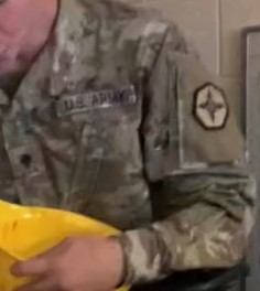 Videoyu paylaşan TikTok kullanıcısını aradığımızda ilgili gönderiye ulaştık. Videodaki askerlerin ABD askeri olup olmadığını incelemek için kullanıcının diğer videolarına baktık. Kullanıcının hesabındaki bir başka videodan kare alıp yakınlaştırdığımızda, askerin üniformasında isim, US Army (ABD ordusu) logosu ve omzunda apoleti görülmektedir. Apoleti ekran görüntüsü alıp tersine arama yöntemi kullanarak aradık.