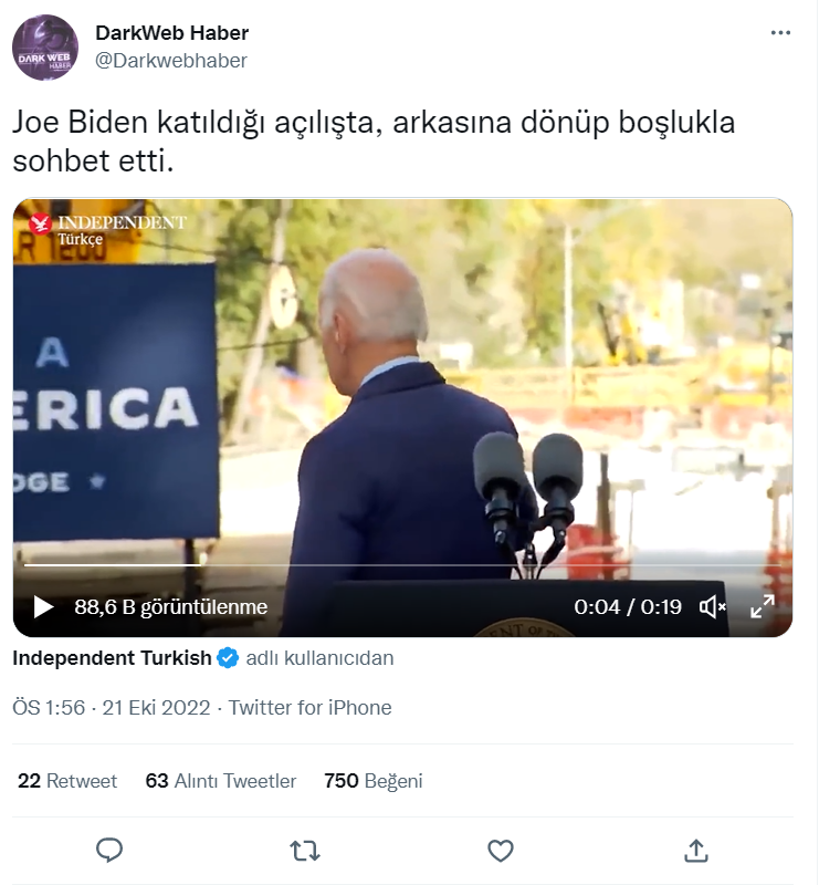 Biden hakkında ortaya atılan en son iddia ise bir törende arkasına dönüp boşluğa konuşması oldu. Bu iddia pek çok haber sitesi ve sosyal medya kullanıcısı tarafından paylaşıldı.