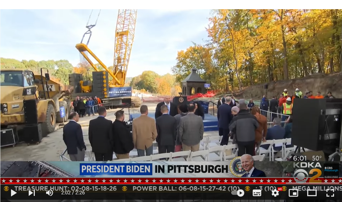 Ulaştığımız haber sitelerinden Joe Biden’ın Pensilvanya eyaletinin Pittsburgh şehrinde bulunan Fern Hollow Köprüsü’nün yeniden inşasını ziyaret ettiğini ve altyapı yatırımlarının önemine dair bir konuşma yaptığını öğreniyoruz.