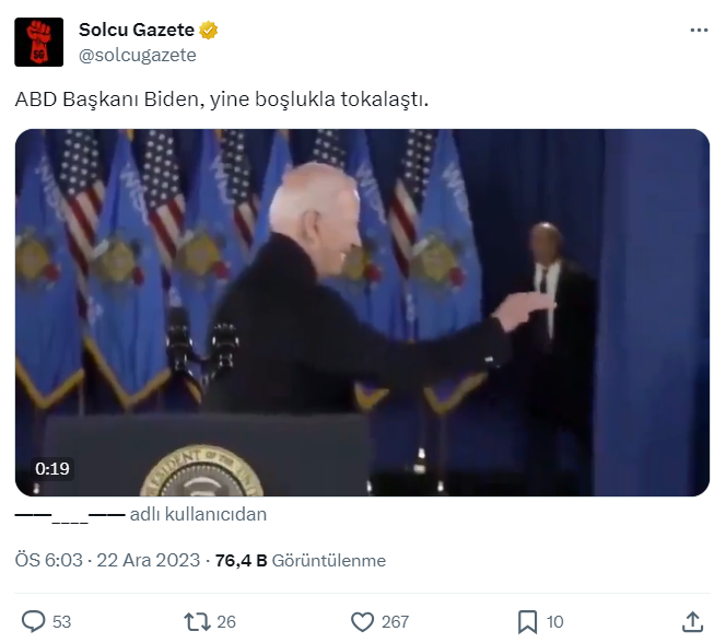 - Video başka açıdan izlendiğinde Biden’ın arkasında insanların yer aldığı görülüyor.
