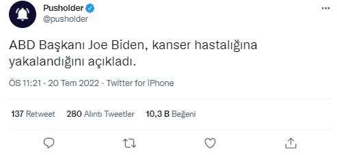 ABD Başkanı Joe Biden Delaware eyaletinin Claymont şehrinde iklim değişikliği ile alakalı bir konuşma yaptı. Konuşmanın ardından sosyal medyada ve haber mecralarında Biden’ın kanser olduğu iddiası yayıldı. Buna göre Joe Biden konuşmasında kanser olduğu itiraf etti. Bu iddianın üzerine Biden’ın görevi bırakacağı ve Başkan Yardımcısı Kamala Harris’in Başkanlık görevini devralacağı söylendi. İddia hem haberleştirildi hem de Twitter da gündeme girdi. İddiaya dair Ekşi Sözlük’te başlık da açıldı