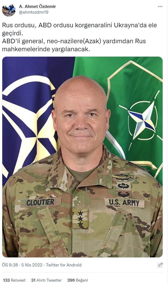 ABD’li korgeneral Roger L. Cloutier’ın Ukrayna’nın Mariupol kentinde, Rus kuvvetleri tarafından yakalandığı iddia ediliyor.