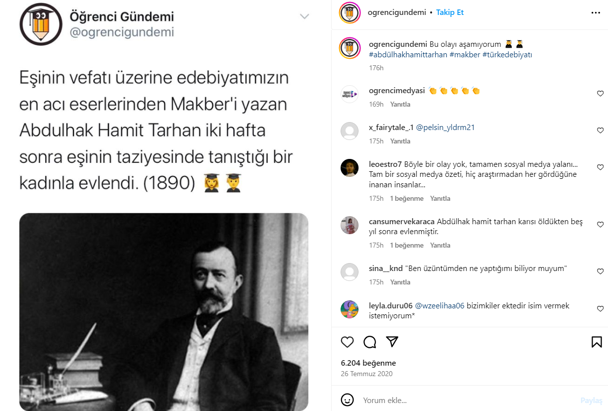 Edebiyat derslerinde duyduğumuz bir not bize Şair Abdülhak Hamit Tarhan’ın, eşinin cenazesinde tanıştığı kişiyle 2 hafta içinde evlendiğini söyler. Yıllardır yayılımda olan bu lise efsanesi paylaşılmaya devam ederken doğruluğunu inceledik.
