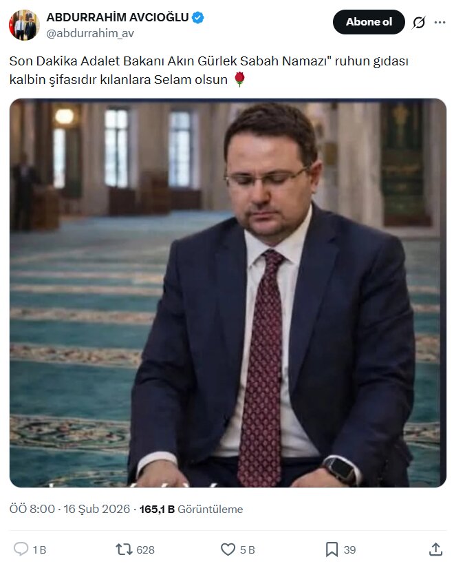 Adalet Bakanı Akın Gürlek’i camide namaz kılarken gösteren fotoğraf gerçek mi?