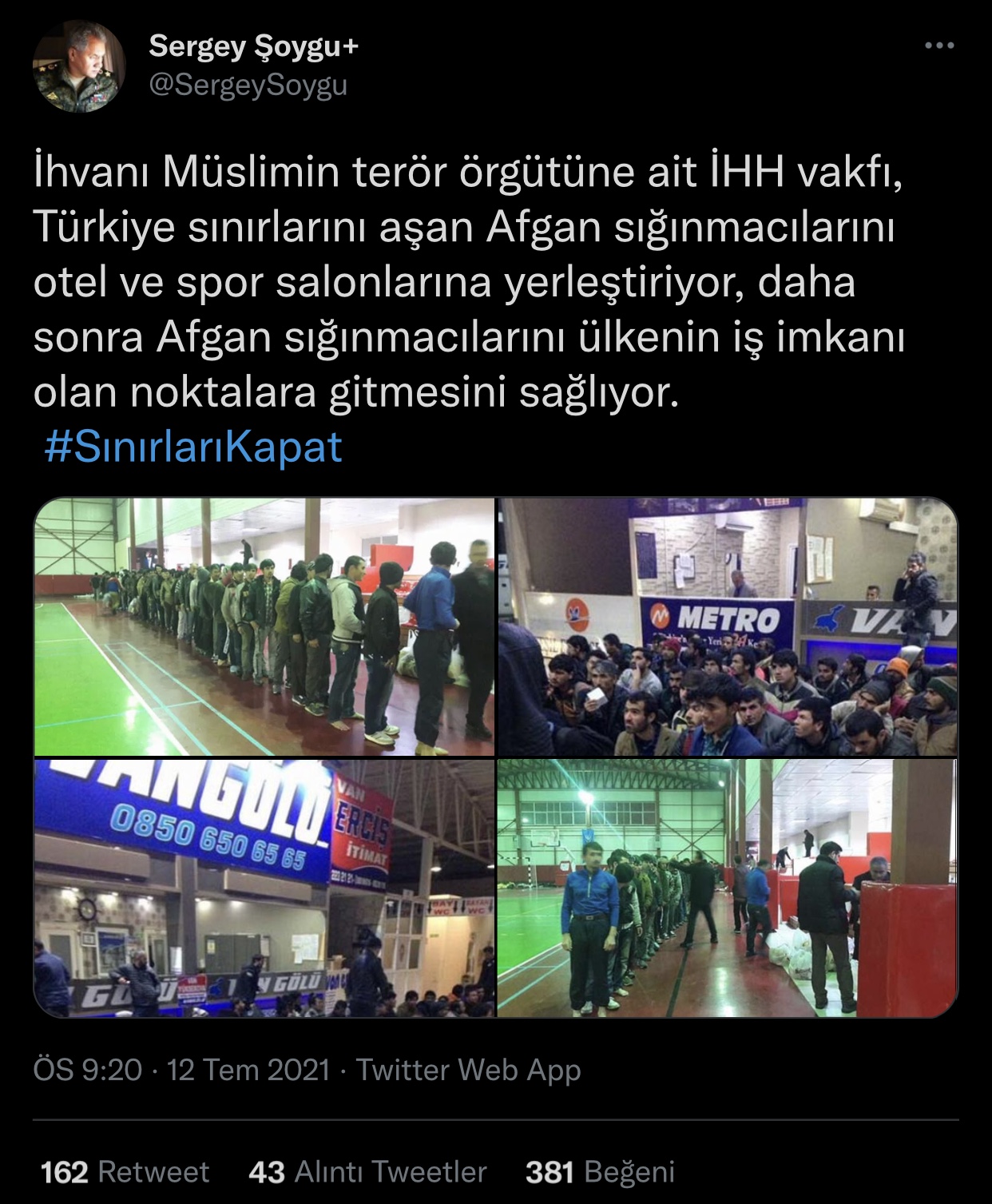 İran üzerinden Van’a geldiği belirtilen Afganistan uyruklu sığınmacıların, İnsani Yardım Vakfı (İHH) yetkilileri tarafından otel ve spor salonlarına yerleştirildiği birçok haber mecrasında da yer almış 2017 tarihli, fotoğrafları.