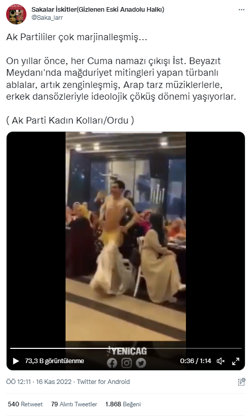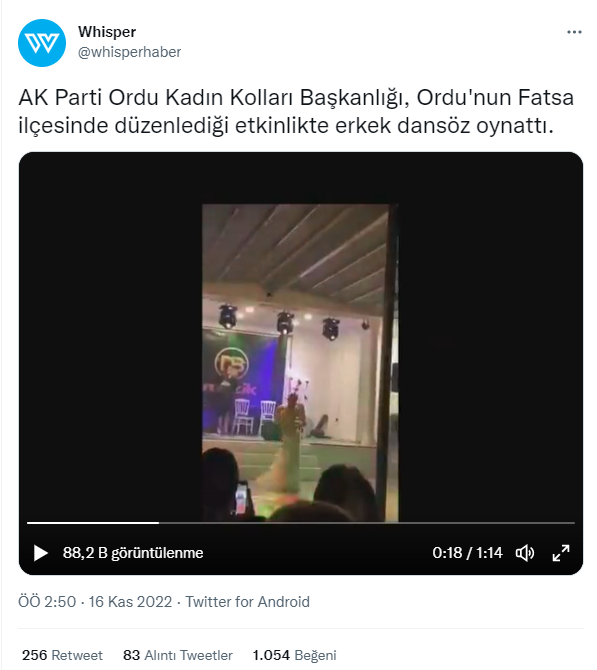 Geçtiğimiz günlerde Twitter’da erkek bir dansçının yer aldığı video gündem oldu. Videoda AK Parti Ordu Kadın Kolları’nın erkek dansözün olduğu etkinliği düzenlediği iddia edildi. Sosyal medyada ve haber sitelerinde paylaşılan ve pek çok etkileşim alan bu iddiayı inceledik.