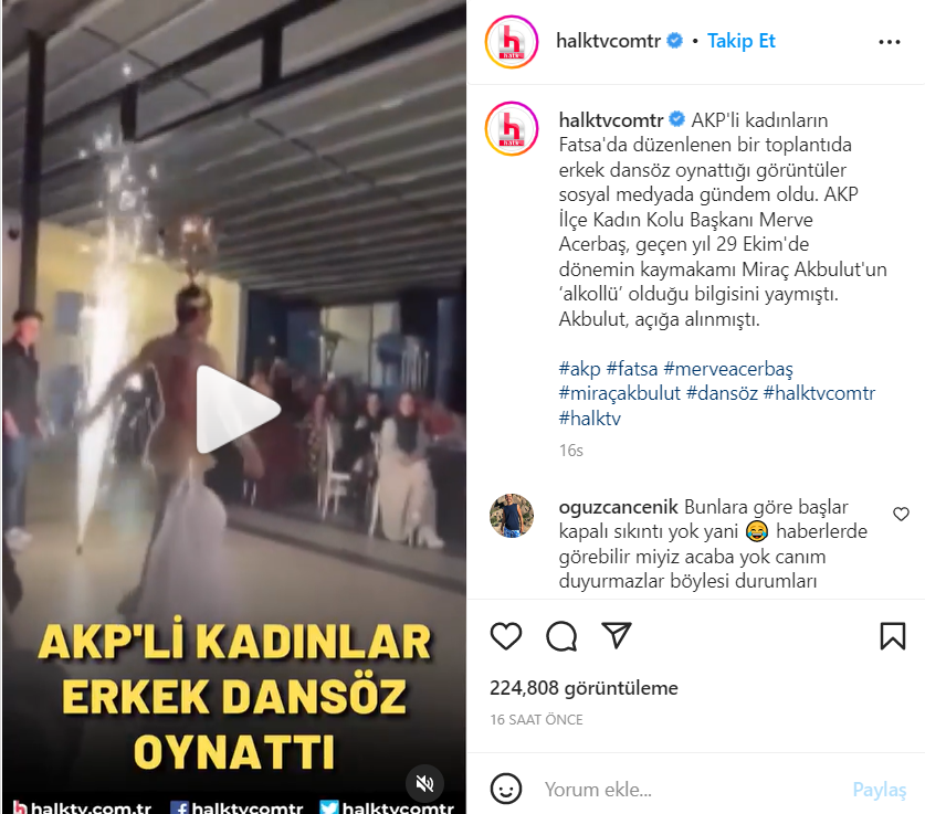 Söz konusu videoyu incelediğimizde paylaşımın mervealiiii adlı kullanıcı tarafından yapıldığını görüyoruz. mervealiiii adlı kullanıcıyı araştırdığımızda ise hesabın AK Parti Ordu Korgan Kolları Kadın Kolları başkanı Merve Acerbaş’a ait olduğunu öğreniyoruz. Merve Acerbaş’ın hesabı gizli olduğundan paylaşımlarına erişim sağlanamıyor.