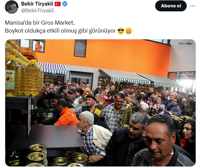 Tabii ki boykota katılıp 2 Nisan’da alışveriş yapmayanlar olduğu gibi hayatına dahil etmeyenler de oldu. Sosyal medyada bu iki karşıt görüşü besleyen paylaşımlar yapıldı. Bunlardan birisi, boykot gününde Manisa’da bir marketteki yoğunluğu gösterdiği iddiasıyla yayıldı.