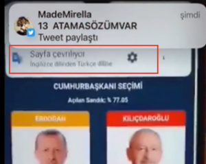 Anadolu Ajansı’nın seçim sonuçları sayfası incelendiğinde “Kamyonet” ve “Yarasa adam” seçeneklerine rastlanmıyor ancak iddiada paylaşılan video detaylı incelendiğinde seçim verileri sayfası yüklenirken sayfanın otamatik olarak türkçe diline çevrildiğini belirten uyarıya rastlıyoruz.