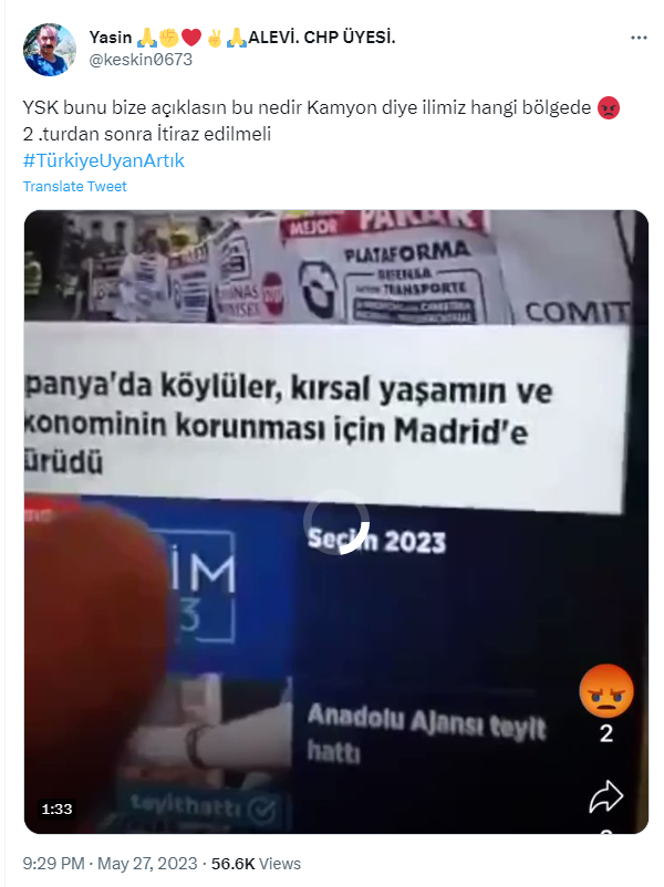 “YSK bunu açıklasın. Kamyon diye ilimiz hangi ilde? İkinci turda itiraz edilmeli” açıklamalarıyla paylaşılan videolu iddiayı inceledik.