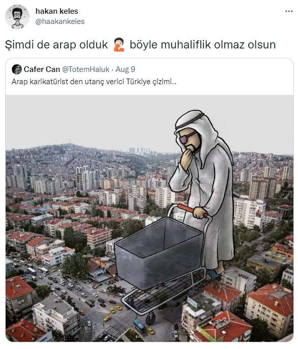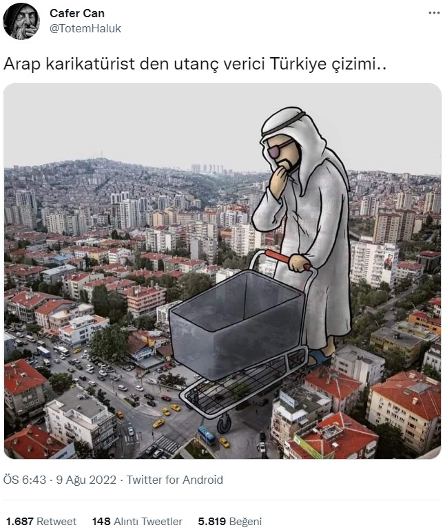 Twitter’da “Arap karikatüristten utanç verici Türkiye çizimi..” açıklamasıyla paylaşılan bir görsel kısa sürede gündeme düştü ve etkileşim aldı.
