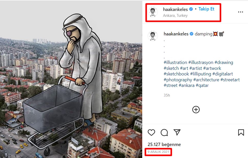 Hakan Keleş’in, yaptığı çizimlerde Türk toplumunun değerleri, gündemle alakalı konulara ve farkındalık gerektiren meselelere odaklandığı söylenebilir. Bu illüstrasyon gündemle alakalı paylaşılmış olsa da, çizimin bir Arap karikatürist tarafından yapıldığı iddiasının manipülasyon olduğu sonucuna ulaşıyoruz.