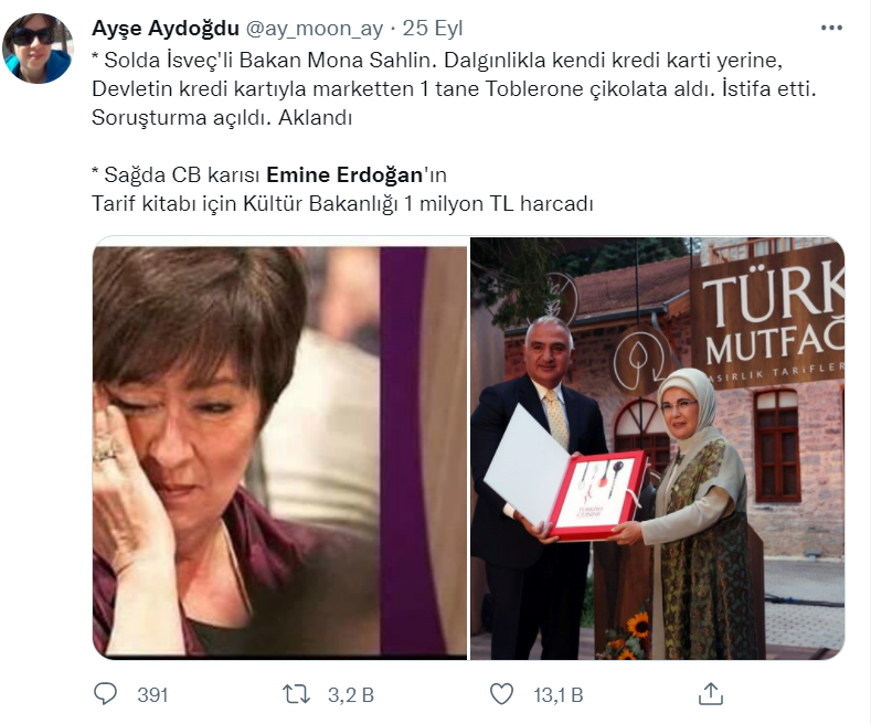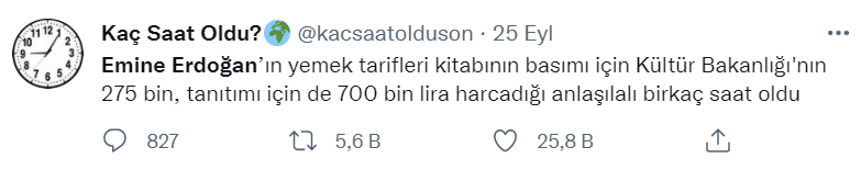 Emine Erdoğan’ın bakanlık bütçesini kullanarak yemek tarifleri kitabı çıkardığına dair yapılan paylaşımlar yüksek oranda etkileşim aldı.