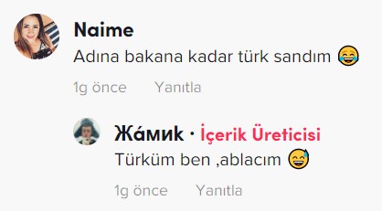 Videonun içeriğini dikkatlice incelediğimizde, bu TikTok içeriğinin “@_zhamik_” isimli bir kullanıcının paylaştığı sonucuna ulaştık. Söz konusu videonun altına gelen yorumlardan birinde, video sahibi Türk olduğunu belirtmiş.