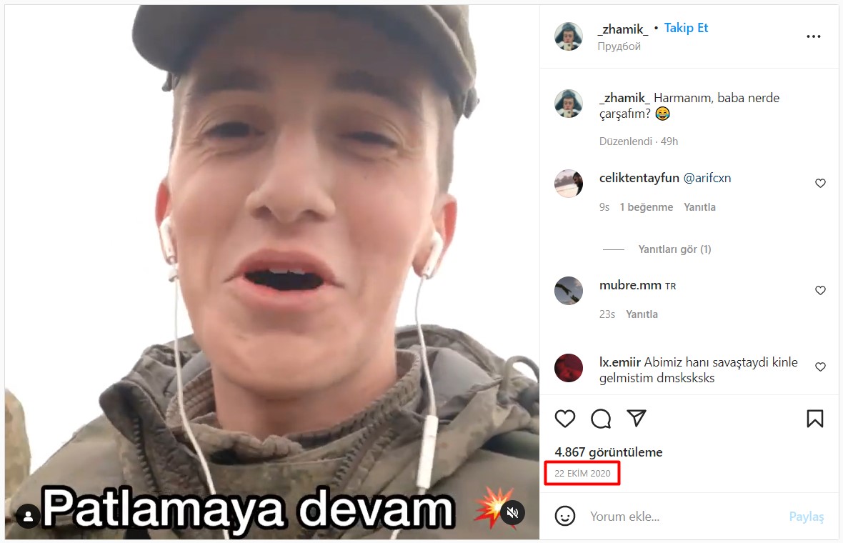 Kullanıcının profil açıklamasına iliştirdiği Instagram hesap adresine ulaştık ve inceledik. İlgili Instagram hesabında da aynı videonun ekim 2020’de paylaşıldığı sonucuna ulaştık. Dolayısıyla iddia edildiği üzere video Rusya ve Ukrayna arasında yaşanan güncel krizle bağlantılı değil.