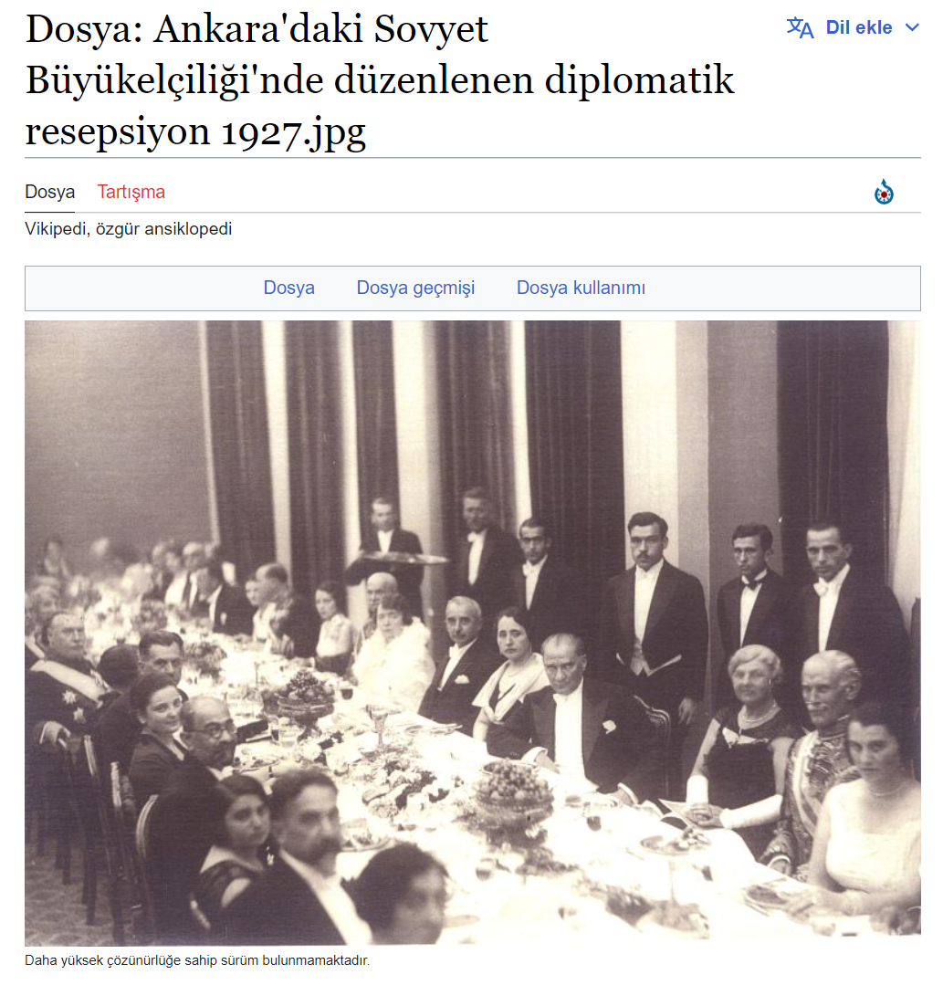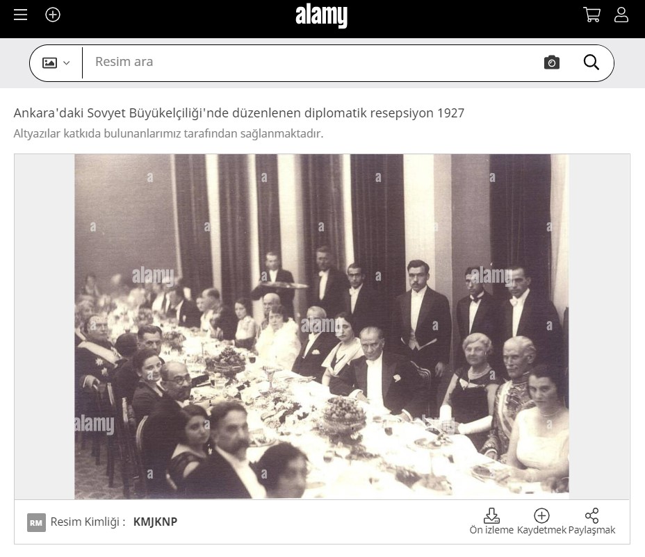 Fotoğraf, 7 Kasım 1927’de çekilmiş. Daveti düzenleyen kişi Atatürk değil Sovyet Sosyalist Cumhuriyetler Birliği’nin Ankara Büyükelçisi Yakov Zaharoviç Surits. Davete Atatürk de konuk olarak katılmış.