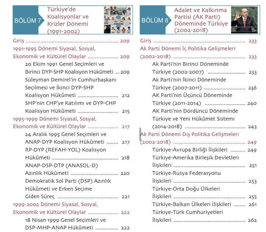 Kitabın içindekiler kısmında sayfa 233-262 aralığındaki 29 sayfa 2002-2018 AK Parti dönemine ayrılmış olarak belirtilse de sayfa 262-280 arasındaki kaynakça ve alıştırmalar kısmı da dahil edildiğinde toplam 47 sayfanın sadece Adalet ve Kalkınma Partisi’nin 2002-2018 yılları arasındaki faaliyetlerine ayrıldığı görülüyor.