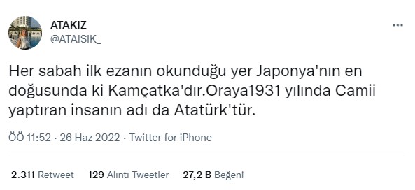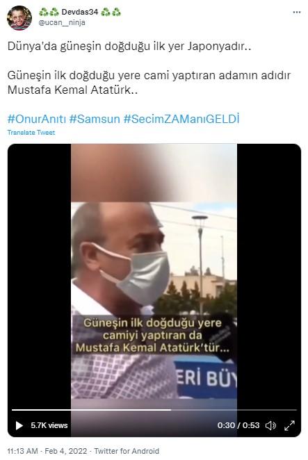 Bu yazımızda, coşkuyla verilmiş bir sokak röportajı örneğini ele alacağız. Atatürk ile ilgili bir soruya cevap verdiği anlaşılan kişi, coşkulu konuşmasının içine iki yanlış iddiayı birden sıkıştırıvermiş. Kimi iddiada güneşin doğduğu ve de camiinin yapıldığı yer Japonya-Kamçatka olarak anılmış.