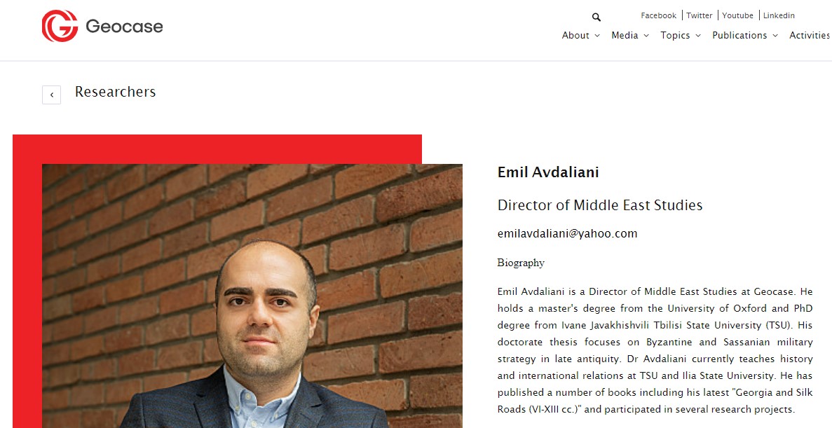 Makalenin yazarı ise Emil Avdaliani isimli bir kişi (2. Görsel). Yüksek lisansını Oxford Üniversite’sinde tamamlayan Avdaliani Tiflis Devlet Üniversitesi’nde doktorasını yapmış. Şu an ise Geocase isimli bir düşünce kuruluşunda Ortadoğu Çalışmaları departmanının yöneticiliğini yapıyor. Özetle yazının Avrupalı bir yetkili tarafından yazıldığına ve özel olarak ABD Hükümeti’ne iletildiğine dair herhangi bir kanıt yok.