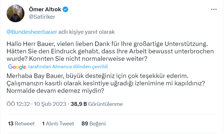 Yine benzer şekilde Bauer, Avusturyalı ekibin başka bir yere çağrılmasının ve Türk ekibin çalışmayı devralmasının normal bir süreç olduğunu belirtmiş.