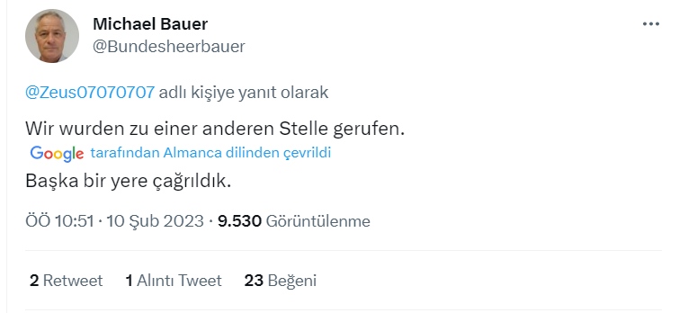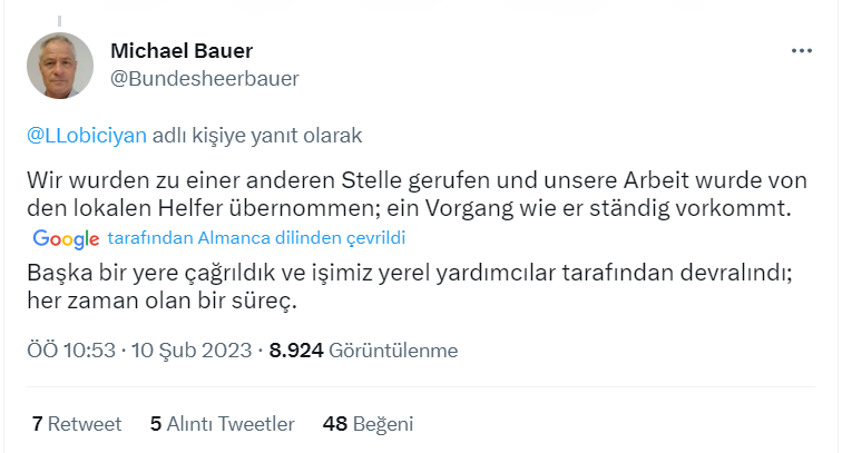 - Micheal Bauer Avusturyalı ekibin başka bir yere çağrıldığını ve Türk ekibin çalışmayı devraldığını, bunun normal bir süreç olduğunu belirtti.