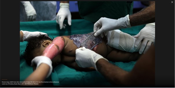 2017 yılında Reuters, balık derisinin cilt yanıklarını önlediği yönünde bir haber yayınladı. Habere göre, yanık tedavisinde domuz derisi ve insan dokusu kullanılabilmekteydi fakat, Brezilya’da ikisi de bulunmuyordu. Bu sebeple, Brezilyalı bilim insanları ülkede bol bulunan Tilapia balığının derisini yanıklara karşı kullanmak için deneylere başladı. İnsan derisi üzerinde yapılan deneylerde, yanık deri balık derisi ile kaplanmakta ve balığın kokusu giderilmektedir.