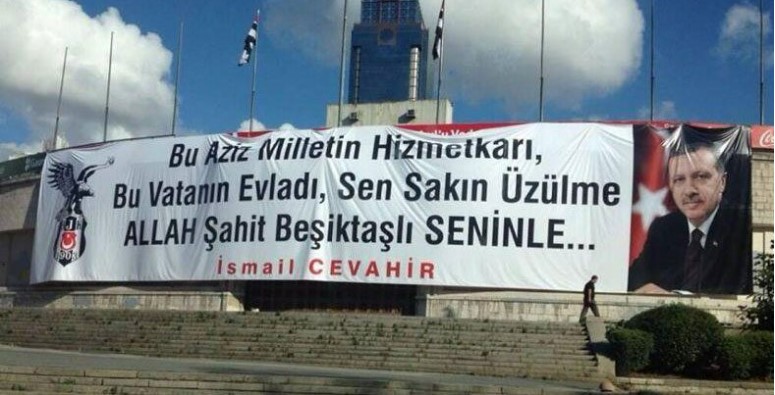 - Cumhurbaşkanı Recep Tayyip Erdoğan’a destek amacıyla dönemin İnönü Stadyumu’na asılan pankartın görseli 2013 yılına ait ve orijinalinde ‘İsmail Cevahir’ imzası bulunuyor.