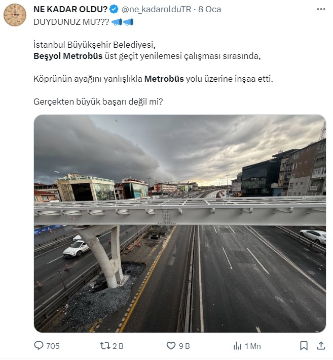 Beşyol istasyonu üstgeçit ayağının, İBB tarafından yanlışlıkla metrobüs yoluna inşa edildiği iddiası