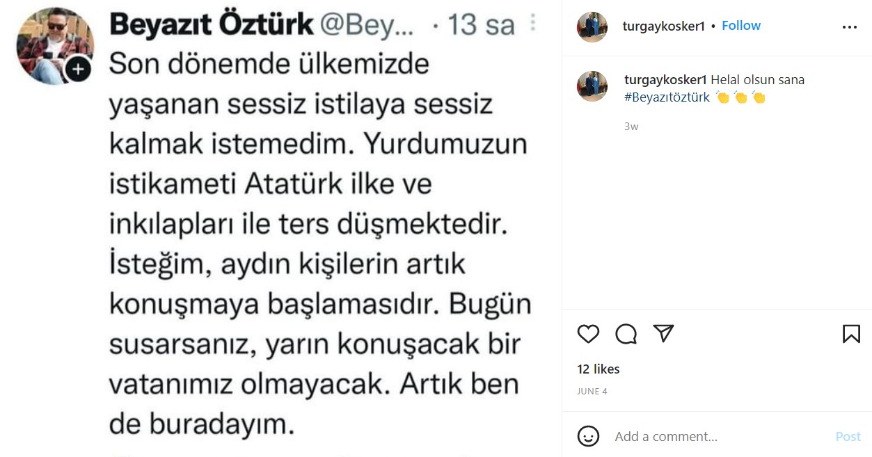 Beyazıt Öztürk’ün resmi olarak kullandığı tek sosyal medya hesabının Instagram olduğu görülüyor. Kendisi, 2020 yılında da bunu bildiren bir paylaşım yapmıştı.
