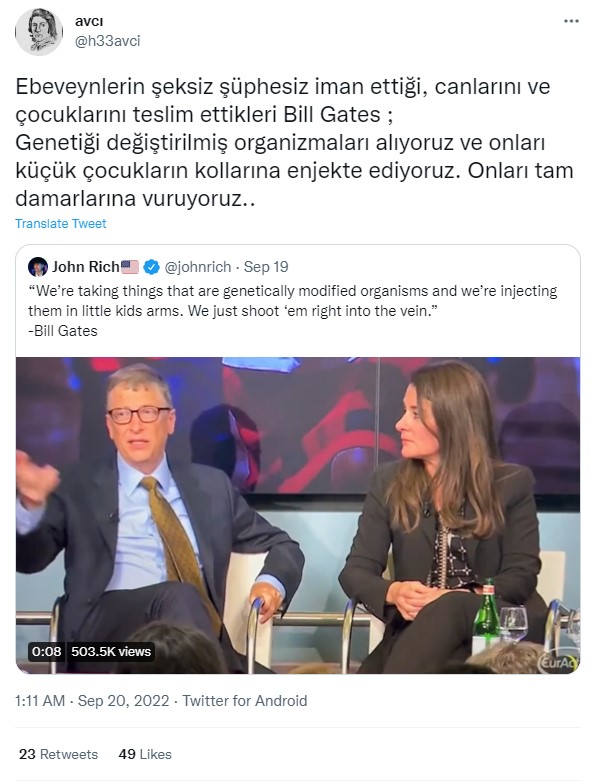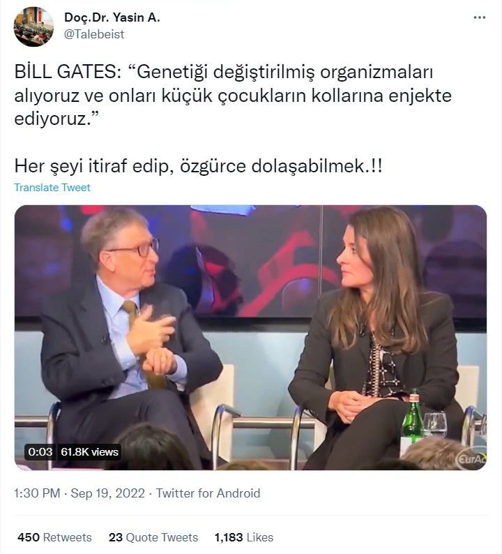- Bill ve Melinda Gates’in 2015’te Brüksel’de katıldığı bir etkinlikten alınan kısa video bağlamından koparılarak yanlış aktarılmış.
