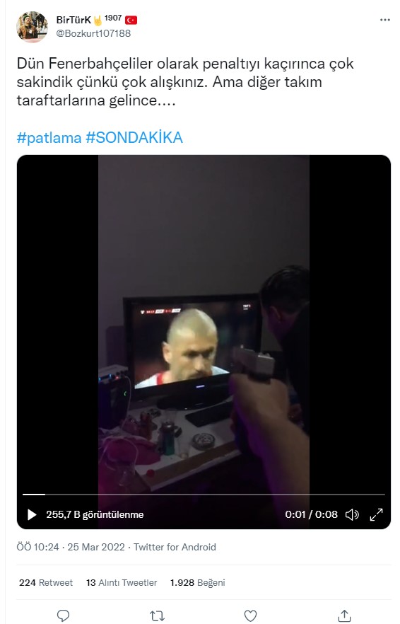 Sosyal medyada paylaşılan bir iddiaya göre paylaşımdaki videoda iki kişinin 24 Mart 2022 tarihindeki Portekiz-Türkiye maçındaki Burak Yılmaz’ın penaltıyı kaçırması üzerine silahla televizyona ateş etti ve televizyon patlıyor. Video hem Twitter’da hem Youtube’da çokça paylaşıldı. İddia hakkında Ekşi Sözlük’te de başlık açıldı. İddia ve video yabancı dilde de paylaşıldı.