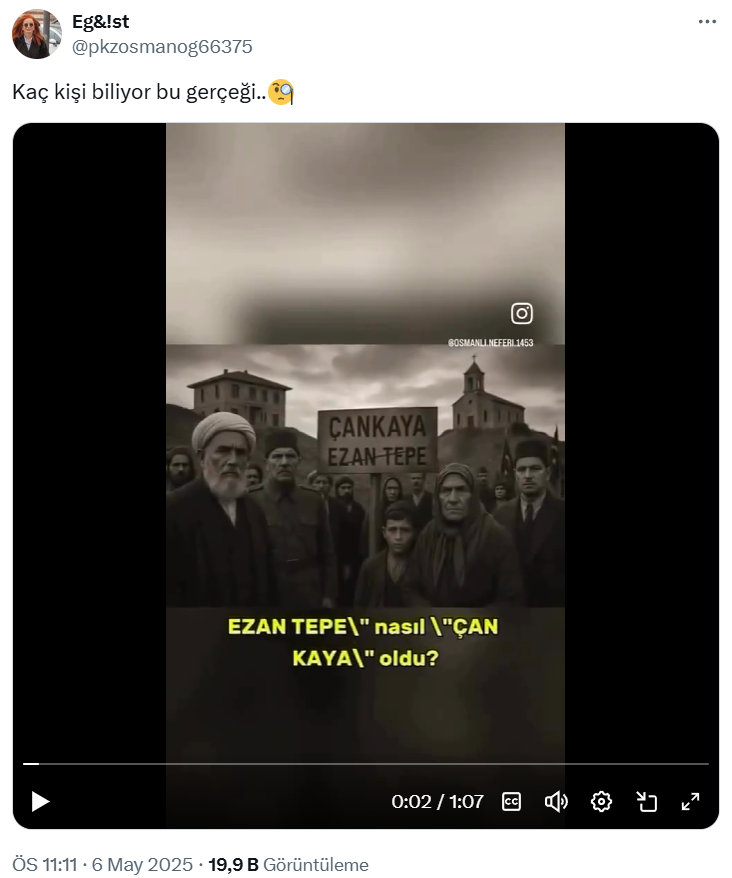 İddiada ayrıca Çankaya isminin, Türk kültürüne uzak olduğu ve Hristiyanlığı sembolize ettiği öne sürülüyor. “Çan” ve “kaya” kelimelerinin bir araya gelmesiyle oluşan bu ismin, “ezan” yerine “çan”ı getirdiği iddiası özellikle dikkat çekiyor.