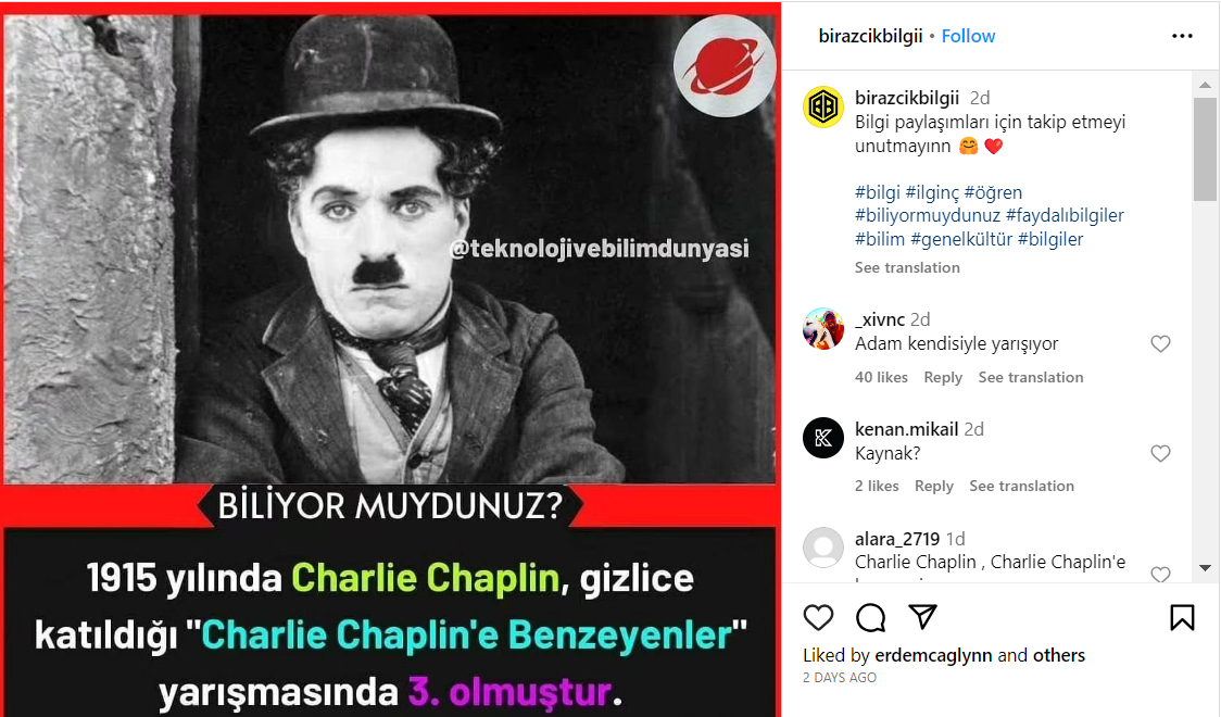 Ancak bu bilgi, Charlie Chaplin’e dair ulaşılabilen güvenilir kaynakların hiçbirinde yer almıyor.