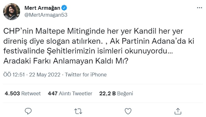 🔴Her yer Kandil her yer direniş'' sloganıyla, CHP eliyle İstanbul'un göbeğine, Maltepe'ye indi; pic.twitter.com/XYUcuADIxA— Cengiz ALÇAYIR (@AlcayirCengiz) May 21, 2022