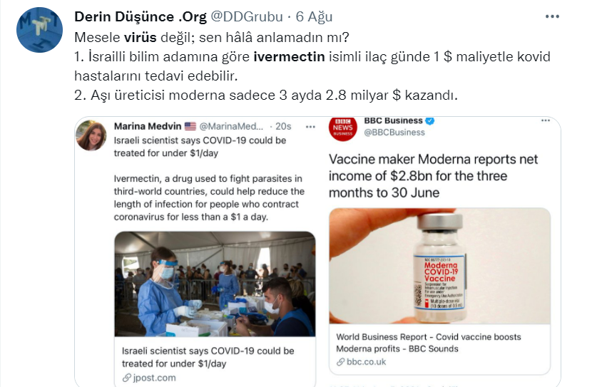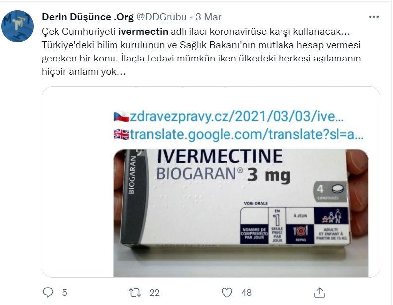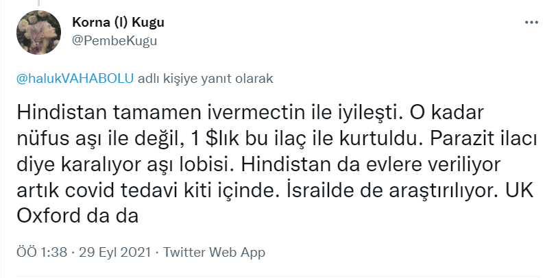 Ayrıca Ivermectın’in Covıd-19 tedavisi için kesin çözüm olduğu bu sebeple küresel güçler tarafından alenen kullanımının engellendiği yönünde paylaşımlar da var.