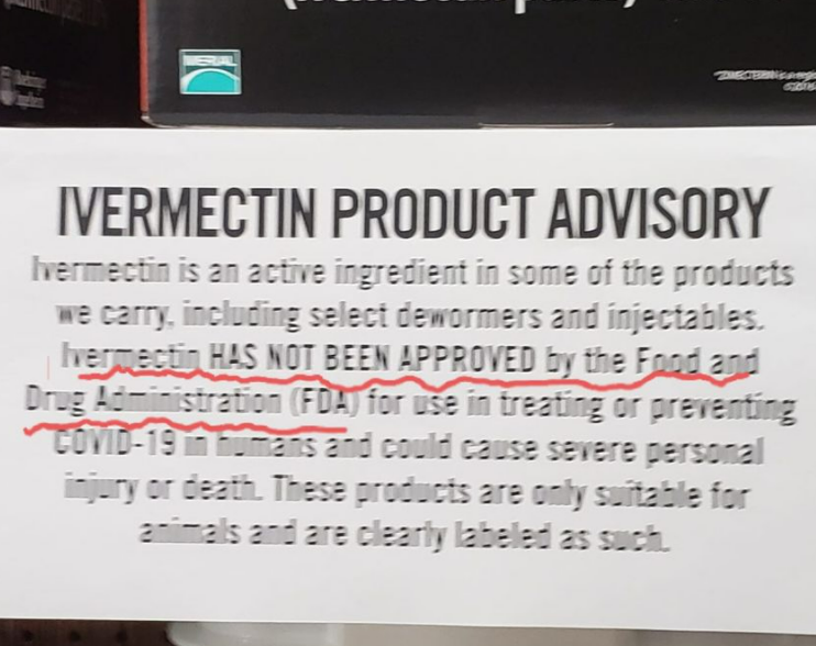 Covid-19 tedavisinde Ivermectin kullanımını öneren paylaşımların sayısının artmasıyla, paylaşımlarda ilacın temin edilebileceği söylenen mağazalar uyarılarda bulunmakta gecikmedi. Mağazalar COVID-19 için ilaç arayan kişilere yanıt olarak: “Ivermektin, insanlarda COVID-19’u tedavi etmek veya önlemek için Gıda ve İlaç Dairesi (FDA) tarafından ONAYLANMAMIŞTIR ve ciddi kişisel yaralanma veya ölüme neden olabilir” yazan paylaşımlar yaptılar.