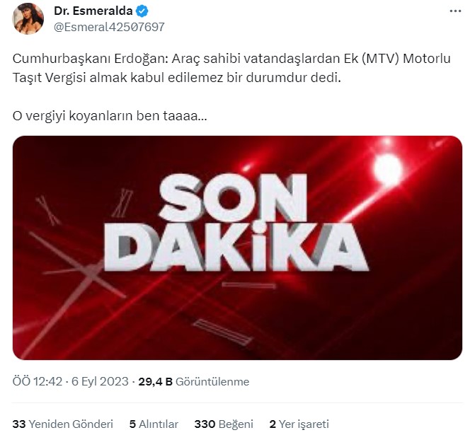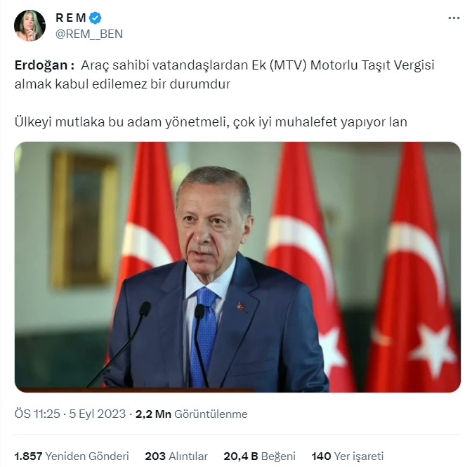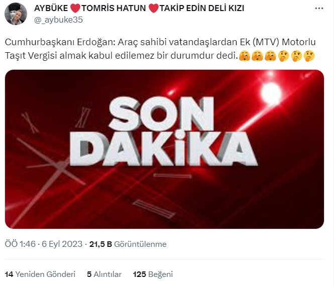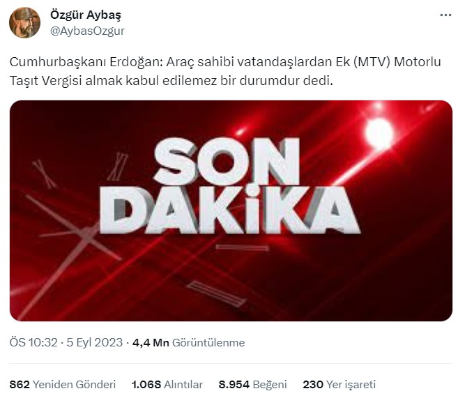 - Cumhurbaşkanı Recep Tayyip Erdoğan’ın, ek MTV uygulamasının kabul edilemez bir durum olduğuna dair herhangi bir açıklaması yok.