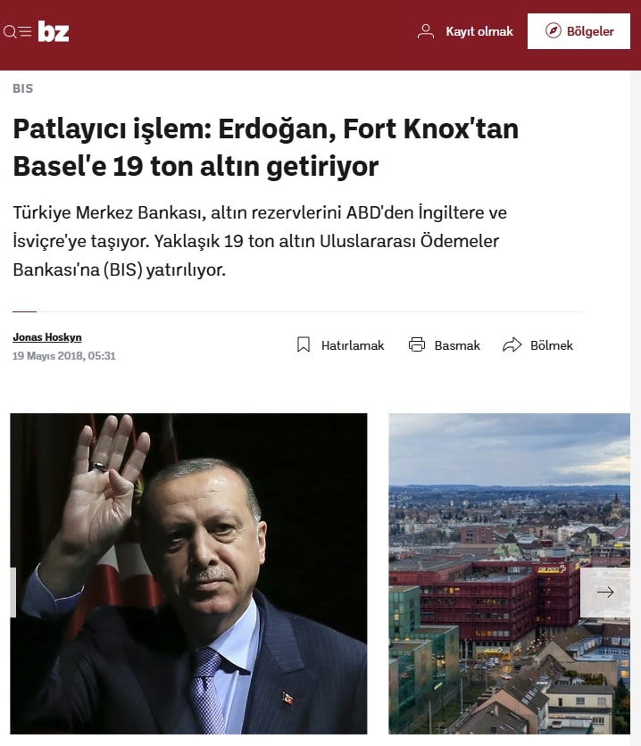 - İsviçre’de yayımlanan haberde Cumhurbaşkanı Recep Tayyip Erdoğan’ın kişisel mal varlığından değil, Türkiye Cumhuriyet Merkez Bankası’nın altın rezervlerinden söz ediliyor.