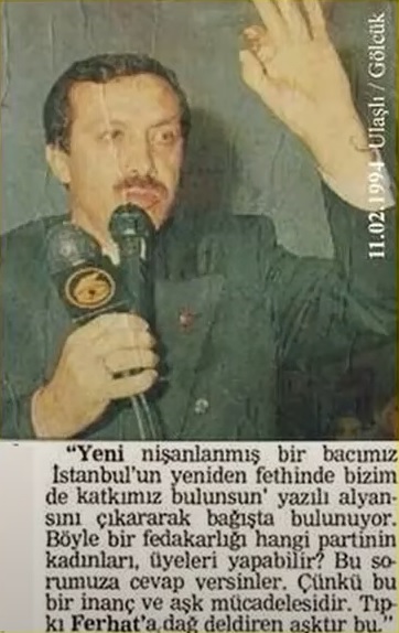 Erdoğan, 1994 seçimleri sürecinde yaptığı bir konuşmada kendisine seçim kampanyasına destek için verdiği yüzükten bahsediyor: